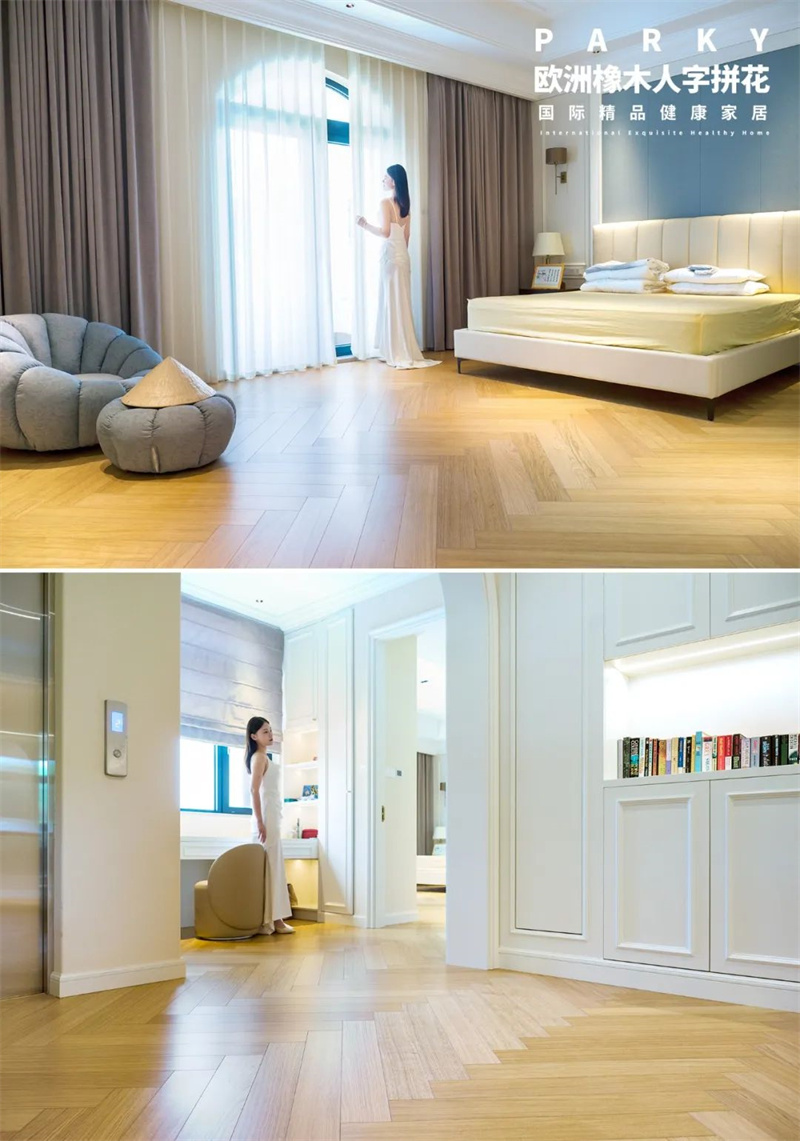 淺色調(diào)線性木紋肌理,注入明凈的舒適視感。人字拼花造型增添豐富的層次感與立體感,極具摩登質(zhì)感,每一處細(xì)節(jié)里,都可見(jiàn)高雅的品味追求。?