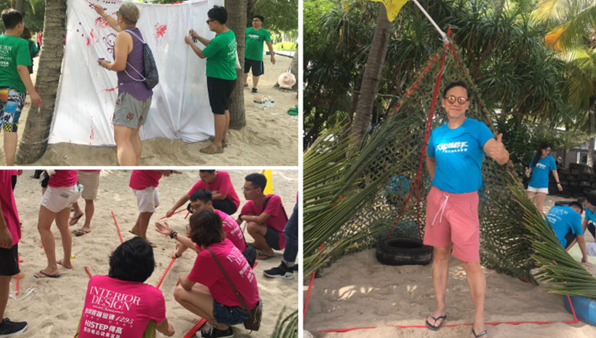 戶外拓展環節有即興設計、時裝show 、挑戰大海三個環節。來自全國各地的年輕選手和難得聚在一起的大咖們,組成紅、黃、藍、綠四個小組,發揮自身的想象與扎實的基本功底,通力協作,在游戲中增進交流、加深認識。